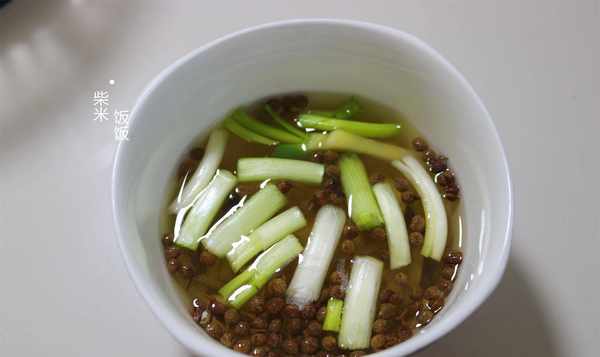 2、将葱、姜、花椒球用开水泡一下,放凉。