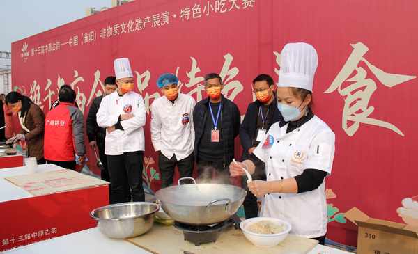 2月25日下午,在淮阳广商梦幻城广场,锣鼓喧天,载歌载舞,现场洋溢着欢乐喜庆的气氛,一场别开生面的第十三届中原古韵 中国(淮阳)非物质文化遗产展演系列活动匠心非遗美食 寻找家乡味道特色小吃大赛在这里隆重举行。