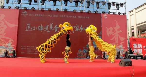 随后,吉祥的舞狮表演拉开了特色小吃大赛活动的序幕。