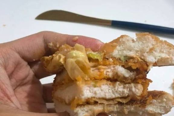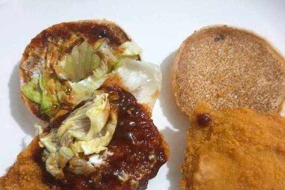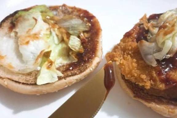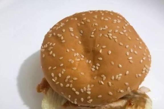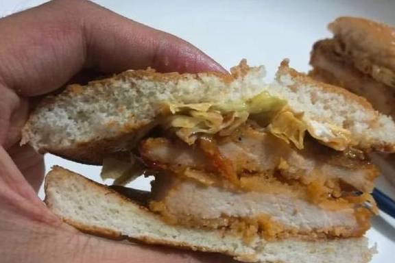 这个汉堡里的鸡排并不大,大概只有面包三分之二左右大小