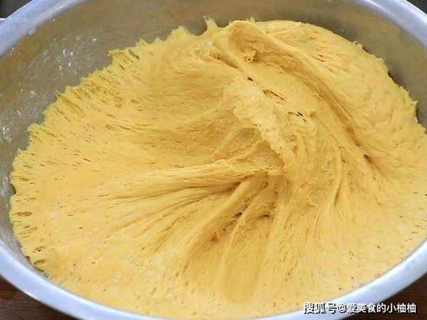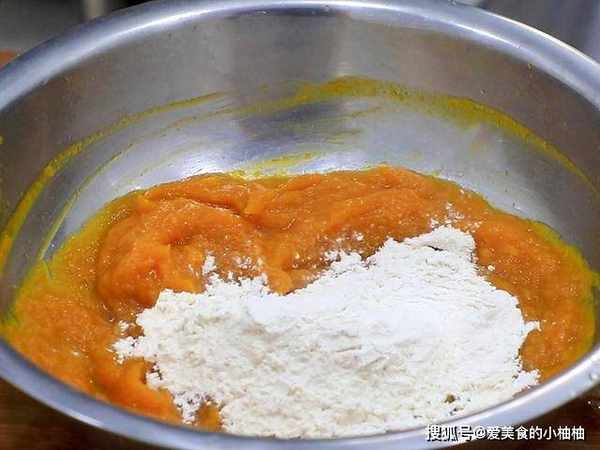 南瓜蒸至软烂就可以取出,放到和面盆里静置放凉。在放凉的南瓜里加入少许清水,把南瓜片搅拌成细腻的南瓜糊;然后我们在盆中加入面粉300克开始和面,减肥的朋友也可以用150克杂粮面粉混合150克面粉替代。给孩子吃的朋友可以加入5克糖,口感会更好一些。