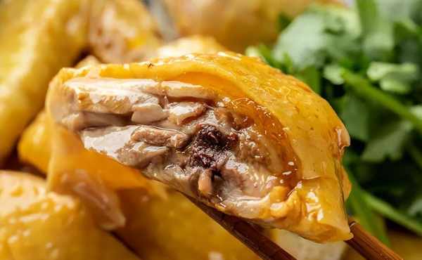 化州当地会用农家养的走地阉鸡来做,肉质紧实而不韧。
