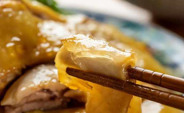 肉滑嫩、皮爽脆,中间还夹着一层黏黏的啫喱胶质,一口下去,三种口感完美融合,太满足了。