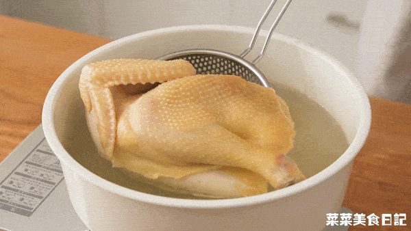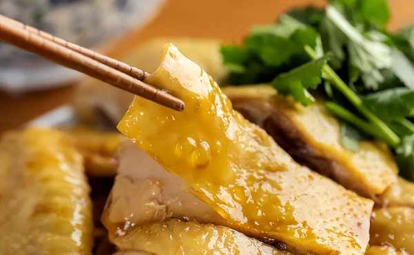 根据鸡肉的大小调整浸泡时间,防止鸡味流失,浸泡过冰水的鸡皮是脆嫩的,鸡肉爽口
