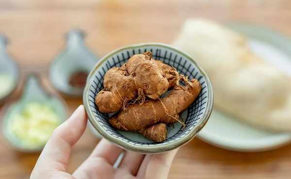 沙姜也叫山柰,和生姜同属姜科,但它没有生姜那么辛辣,吃起来还微甜,油炸后会留下沁人的香气。