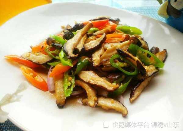 【材料】 鲜香菇5朵,青辣椒2根,红甜辣椒1根