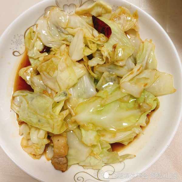 第二步:煸炒好的三成肉推到一边,放入生姜片和蒜头还有干辣椒炒出香味,再放入花椒粒一起炒,配料炒好后再放入包菜翻炒,同时放入调料,酱油,精盐和陈醋,最后要出锅前撒上白糖,炒均匀即可出锅。