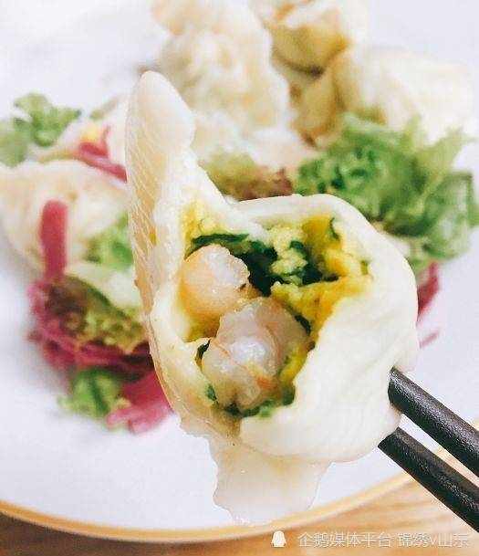 【食材】:韭菜500克、鸡蛋4-5枚、大虾十多只、熟花生油(也可是其他自己喜欢的油)4-5汤匙、香油少许、盐适量、面粉和清水各适量。
