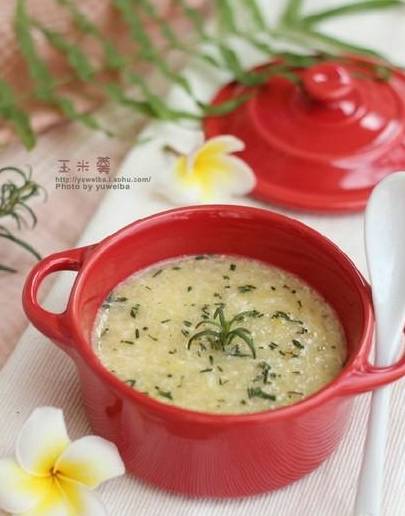 材料:玉米1000克,冬瓜500克,瘦肉150克,鸡蛋1个,迷迭香小许。