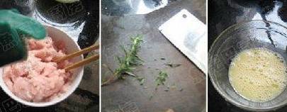 6、猪肉剁碎,加入小许白砂糖、酱油。