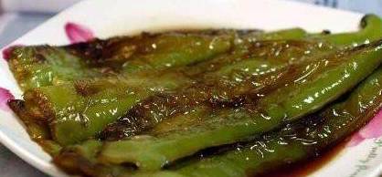 把大个的尖头青椒洗净,剪去蒂头,破开,去除外面的籽(不怕辣的可以不去籽)把青椒平摊在案板上,用一块干净的布,覆盖在青椒上,然后用手按压布,把青椒按扁并且吸去水分,以免等下煎的时分爆锅起油锅,大火,等油烧热了,把青椒放出来煎,一边煎一边用锅铲按压青椒,煎好一面一个个翻过来煎另一面两面都煎好后,放醋和白糖(醋的量比白糖稍微多点),然后放少许水,盖上盖子稍微煮一会儿以便让青椒入味,最后开盖装盘