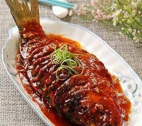 预备好一切材料,将鱼洗净在鱼身两侧划口子(尽量深一点)干淀粉加入过量水调成糊,平均涂抹在鱼身上。锅里放入足量的油,烧至7成热,手提鱼尾,在锅上用勺往鱼身上淋热油,使鱼定型。然后把鱼顺锅边划入油锅内,边炸边向鱼身上浇热油,中火炸至鱼皮变酥。捞出炸好的鲤鱼放入鱼盘中。锅内留底油,爆香葱姜蒜粒再放入番茄酱略炒。锅内加入过量的水,再放入剩余的盐、胡椒粉和白糖、陈醋、味精大火烧开。淋入过量水淀粉炒匀。再放入1汤匙的熟油。直到锅内芡汁明亮平均。把芡汁浇到炸好的鲤鱼下面即可