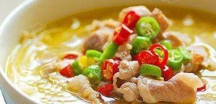 用料肥牛片250克;金针菇125克;青尖椒1根;红尖椒2根;海南黄灯笼辣椒酱100克;蒜5瓣;姜片过量;白醋5克;料酒10克;盐2克;糖3克;高汤过量;酸汤肥牛的做法