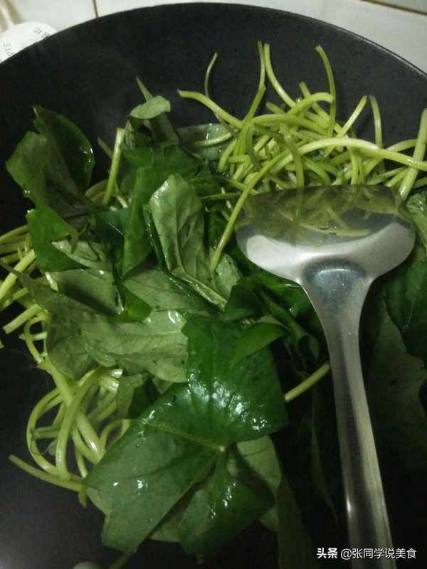 ②番薯叶易熟,在炒的时候火候要大,翻炒几下便基本熟透,如果炒得太久,口感会变差,又绵又烂。