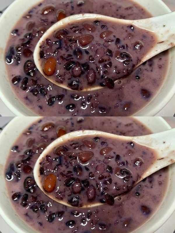 准备食材:适量黑豆、红豆、黑米,牛奶。