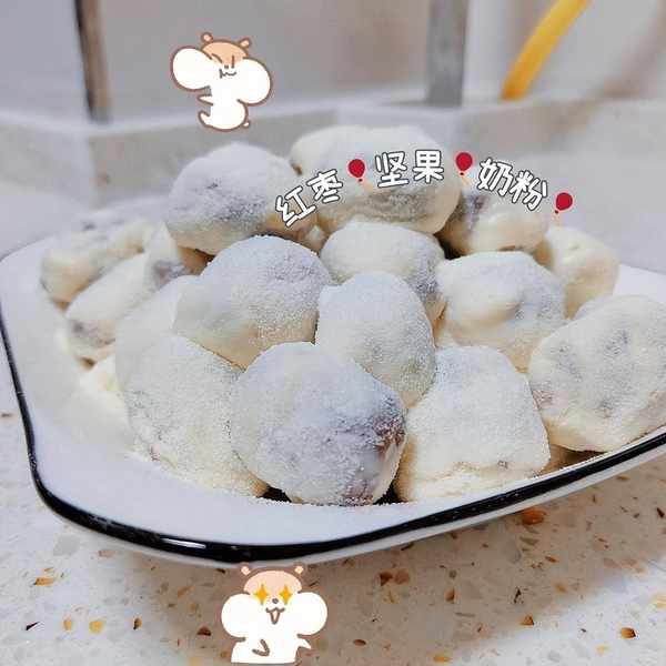 准备食材:红枣,10g黄油,160g棉花糖,30g奶粉,。