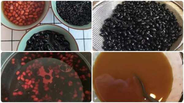 1、准备食材。首先将准备好的黑豆和红豆浸泡一晚上,然后让黑豆和红豆充分泡开。