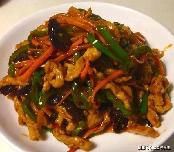 2、准备的里脊肉切成肉丝,加料酒,白胡椒去腥后,加少许佐料腌制;热油锅,先下肉丝滑锅后盛出,锅留底油,下豆瓣酱炒出红油,再加入葱花炒香;依次加入木耳,胡萝卜,青椒丝炒至断生!