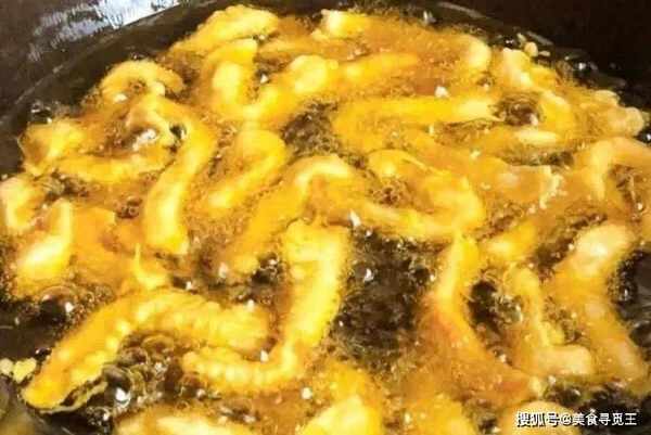 2、今天我们用鸡胸肉做,改刀后加佐料腌制10分钟;准备面粉、淀粉、鸡蛋、水拌成浆糊给鸡胸肉挂糊;宽油锅,下鸡胸肉中火炸至表面金黄捞出;油温升高进行二次复炸,至周围冒大气泡捞出;