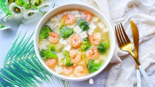西兰花虾仁豆腐汤