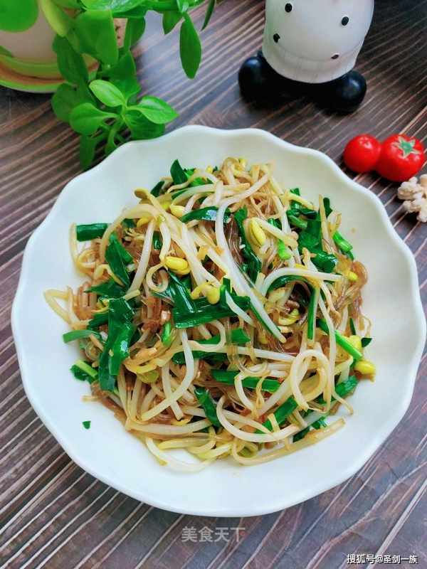 准备韭菜、绿豆芽、胡萝卜、红辣椒、香葱、生姜、食盐、生抽、香醋、鸡精、食用油。