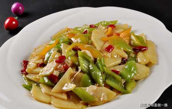 4. 锅中留底油,将土豆片入锅煸炒;