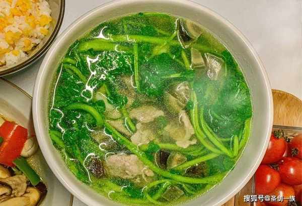 4.接着加入适量的食盐、胡椒粉和鸡精调味提鲜,然后放入清洗干净的西洋菜烫熟,即可出锅开吃。