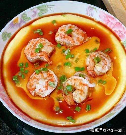 食材:虾仁,鸡蛋,玉子豆腐,葱花。