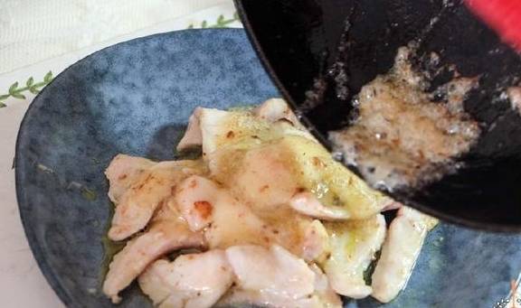 当然还没结束哦!为了让酒糟的香味更浓,我们还需要做最后一步的处理,那就是煎鱼的锅不要洗,继续加入一些酒糟的液体,小火煮沸煮香之后,迅速捞出,浇到鱼片上即可!