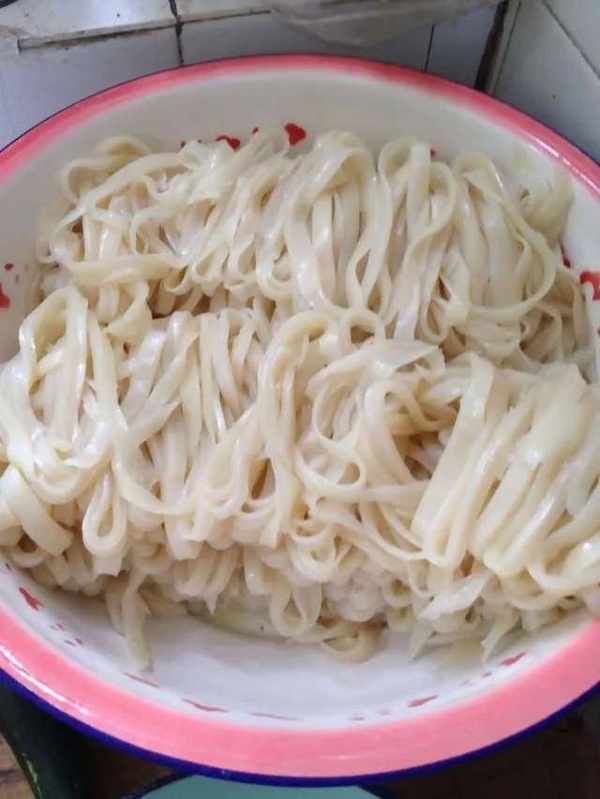 妈妈搅拌面糊,不停地搅,说这样更劲道,妈妈说调好面糊之后要醒面一个小时,这一步必不可少,可以增加面皮的柔韧性。等面醒好的一个小时,妈妈也没闲着,准备起了菜,我也在一旁帮着妈妈剥蒜,准备调料。