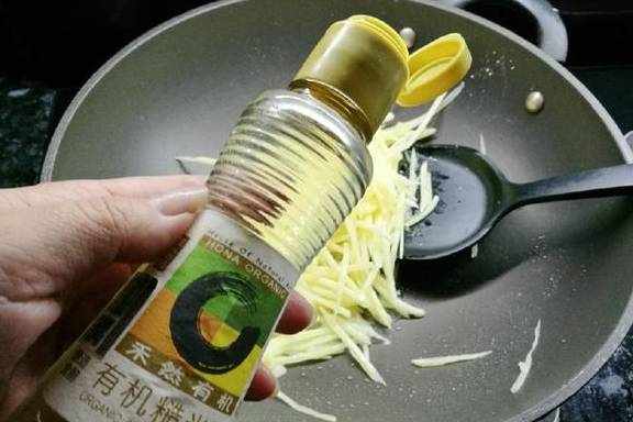 先滴2滴的白醋,这样炒制好的土豆丝还能保持爽脆感的哈