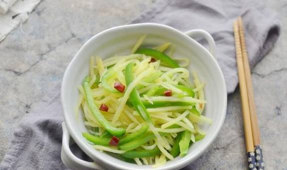 之前一直觉得土豆和肉搭配是最好的方式,没想到一次到饭店吃饭才知道,原来这么简单的食材和青椒一起搭配,成本不过2元就能做一道超级开胃的下饭菜,而且多吃还能促进消化,能降脂减肥,果然是老百姓餐桌上最实惠的菜肴。当然更是女人们减肥路上的好伴侣,不吃真是可惜了。