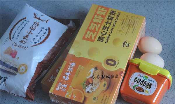 面粉100克,水120克,芝士蟹排一盒,鸡蛋4个,豆瓣酱一勺,酵母3克。