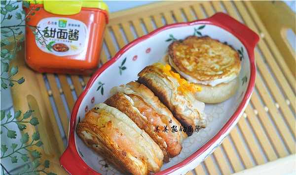 蟹饼油炸后可以直接食用。如果你想要更浓一点的味道,我们可以用一点甜豆瓣酱。