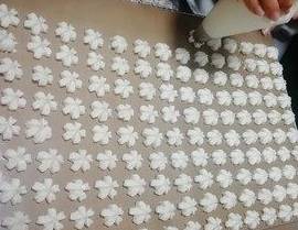 裱花嘴距离油布一个手指的距离稳住挤出你想要的花型后才提起裱花嘴。