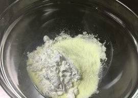 在奶粉和玉米淀粉混合物中加入35克的自制酸奶,用手动打蛋器混匀成为奶糊