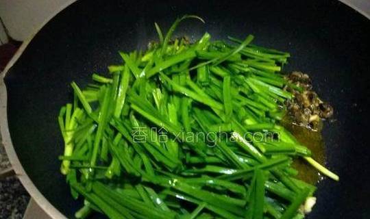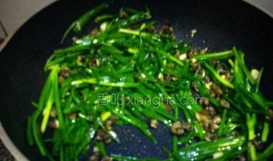 9.看韭菜变色,变软,给鸡精,搅拌均匀,关火出锅