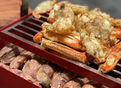 【炭烤松叶蟹、地瓜】这个造型真的是有把小编Q到,头一次见到抽屉式,地瓜超级无敌甜!反正最喜欢这道菜!推荐指数:☆☆☆☆☆