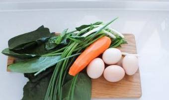 配料:菠菜,香葱,盐,胡萝卜,鸡蛋等