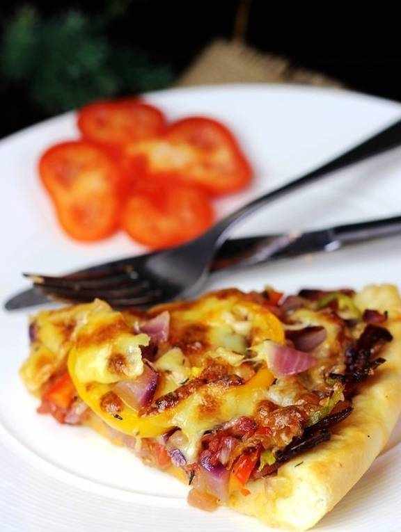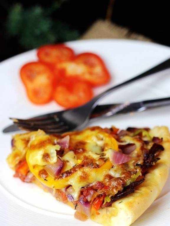 虽然热量有点高,不过叶子已经相对减了脂肪方面的热量,同时在这个比萨中西红柿、洋葱、彩椒等加了不少,比买的健康多了,当然,如果一不留神吃多了还是要多多运动哈。