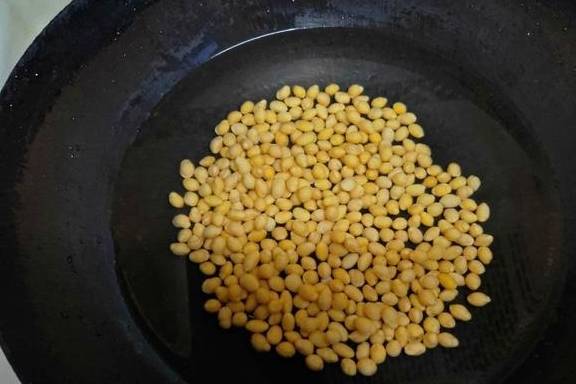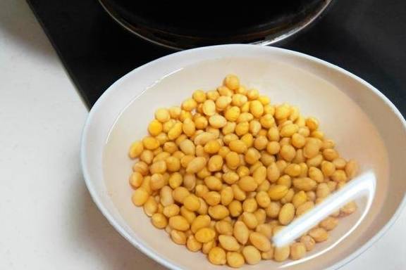 浸泡好的黄豆用清水多冲洗几遍,然后放入锅中,加入适量的清水,大火烧开后转中火继续煮20~30分钟左右,将黄豆煮熟。黄豆因为经过了泡发,所以很容易煮熟,一般二三十分钟就可以闻到豆香味,且可以看到黄豆开始脱皮了,这时便可以关火了。这一步注意,要将泡发好的黄豆清洗几遍后再放入锅中煮,而且泡豆子的水不要倒入锅中,因为里面含有豆碱,对身体不好。