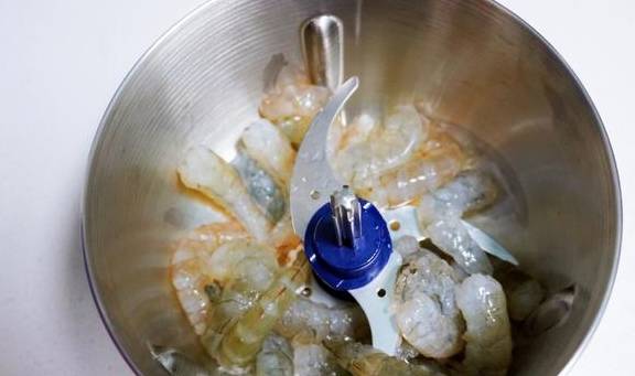 3.将虾肉放入料理机中,加入蛋清,玉米淀粉,鲜鸡汁调味料搅打成泥。