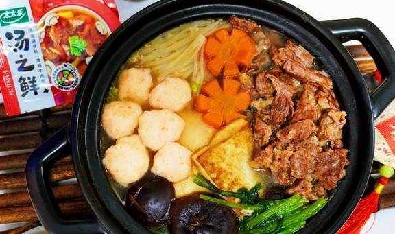 6.煮20分钟左右,热气腾腾美味的肥牛寿喜烧就做好喽。