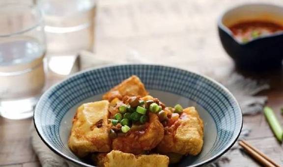 炸过的内酯豆腐外皮香脆,沾上浓郁的酱汁,咬下去又嫩滑无比,家里有老人小孩,肯定特别受欢迎。