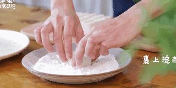 豆腐的每一面都要裹上淀粉,再裹上蛋液
