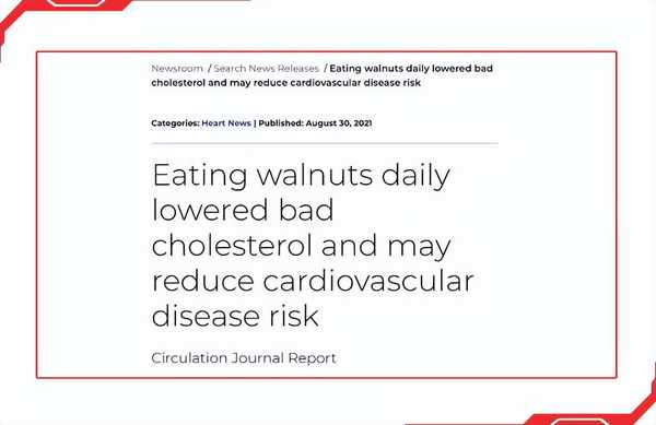 2011年,经过美国心脏协会的认证,核桃已经正式成为了保护心脏健康的食品。2012年,欧盟也正式认可了核桃对于维持心血管健康的作用,针对核桃还宣布了健康声明:“核桃有助于改善血管弹性”。