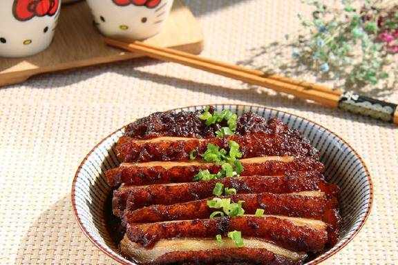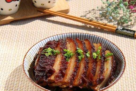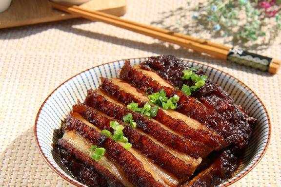 现在有许多传统菜都被人遗忘了,唯有这碗扣肉一直传承至今,经久不衰,我觉得因为实在是好吃所以不被人至遗忘,经过油锅炸至之后的五花肉油脂已经去掉了一半,再调味后蒸制之后,肉质酥而不烂,肥而不腻。尤其是那一块皱巴巴的肉皮,香糯的回味萦绕不绝,诱人胃口大开.喜欢的可以收着。详细做法请往下看;需要的食材;走油肉(半成品)400克生抽3汤匙老抽1汤匙冰糖15克八角少许葱花少许黄酒1汤匙