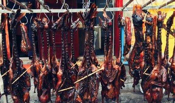 杭州人过年不能缺酱货。一入冬,甭管是马路边还是窗户外,随处可见悬挂着的油光发亮的酱鸭和酱肉。前不久,爸爸也晒了酱肉,用的是农家土猪肉,先经过短暂的风干,再用湖羊酱油和多种香料浸泡腌制,最后悬挂在通风处晾晒,经过阳光和风的加工,酱肉已经乌黑发亮,散发着浓郁的酱香。