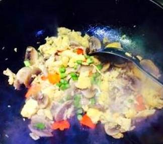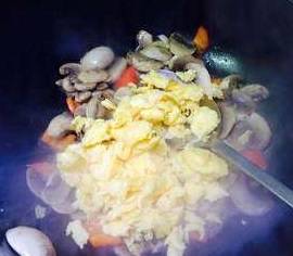 下入鸭蛋继续翻炒均匀,调入适量味精,糖