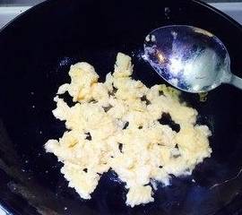 锅烧热倒入适量食用油,鸭蛋打散倒入,滑炒盛出来